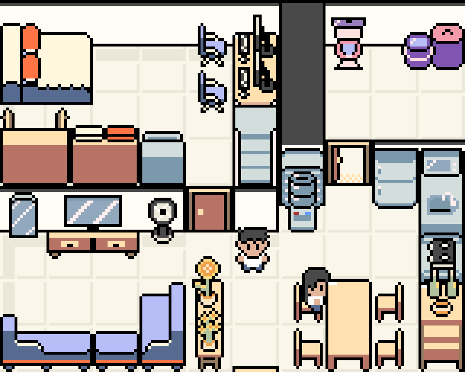 With a focus on clean pixel design and versatility, this pack includes characters and a variety of indoor objects that fit seamlessly into modern or everyday settings. Whether you're building a small room or a full apartment layout, these assets help bring your scenes to life.